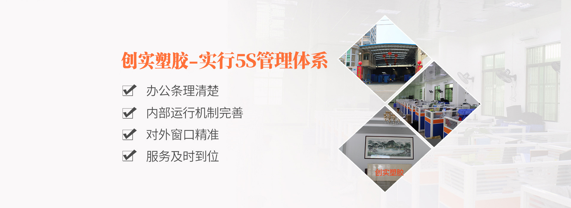 東莞市創(chuàng)實塑膠制品有限公司,成立至今已近二十年。原名東莞市聯(lián)創(chuàng)塑料加工廠,創(chuàng)業(yè)近二十年間,經(jīng)過不斷的研發(fā)開拓,提高生產(chǎn)水平,品質(zhì)監(jiān)控,逐漸成為行業(yè)標(biāo)桿企業(yè)。并于2016年更名為東莞市創(chuàng)實塑膠制品有限公司。本公司是一家集研發(fā)、設(shè)計、制造、營銷為一體的大型生產(chǎn)塑膠產(chǎn)品的企業(yè),通過ISO9001:2008質(zhì)量管理體系認(rèn)證,SGS產(chǎn)品認(rèn)證。公司有注塑成型的設(shè)備三十多臺,有著大批的研發(fā)與管理人才。